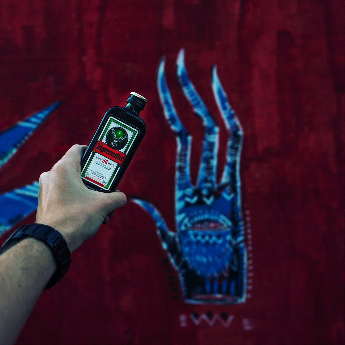 Holy damn! Was für ein Schnaps, Kräuter on mass und fotogen noch dazu. Im urbanen Mantel die Jägermeister Familie ablichten? Klaro! Das Ziel waren Produktfotos für den Social Media Kanal von Jägermeister Deutschland zu erstellen, dabei möglichst urban. Durch meine Erfahrung in der Street Fotografie war es eine gelungene Abwechslung ein Produkt in den Straßen von Köln abzulichten. Coole Graffitis, rostiges Metall und Beton halfen mir dabei die Marke Jägermeister in der jung dynamischen Straßenszenerie abzulichten.
